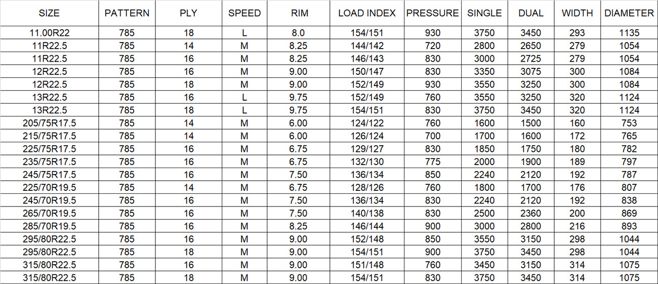 ANNAITE TRUCK TIRES 785 PATTERN FOR 295/80R22.5 315/80R22.5