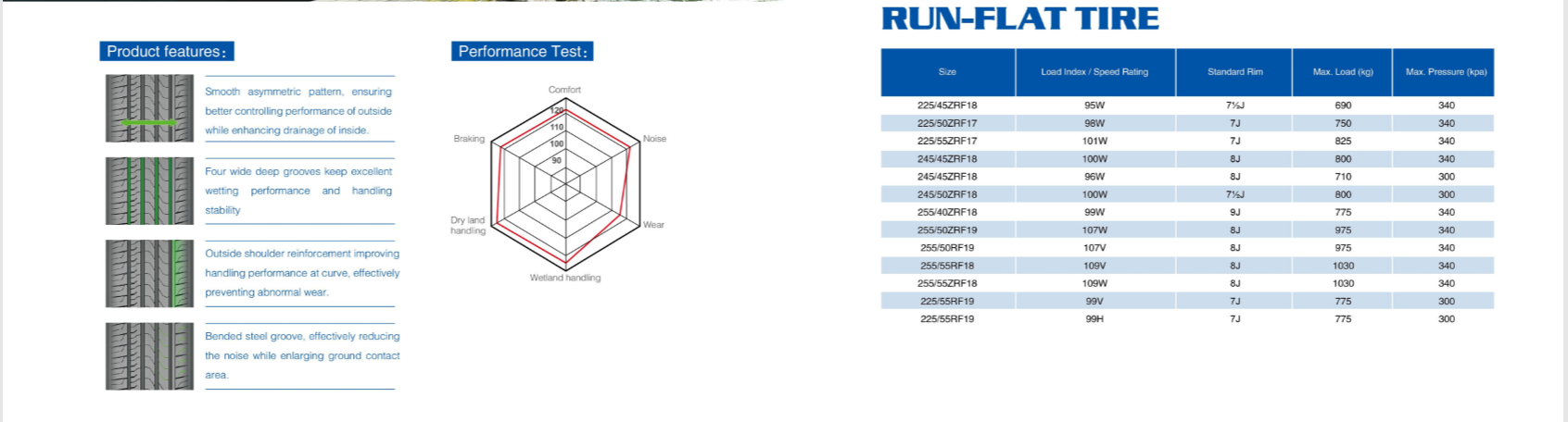 SIZES: 225/55RF17 ,245/45RF18 ,225/50RF17 225/45RF17 ETC